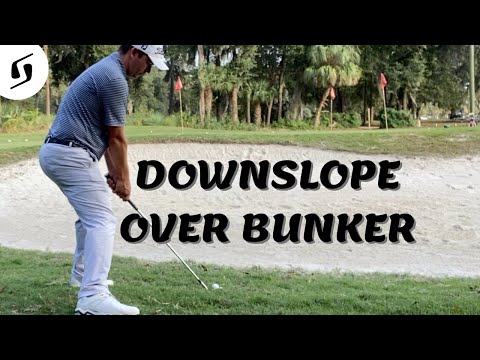 Golf Pitch Shot Off Downslope to Save Par -